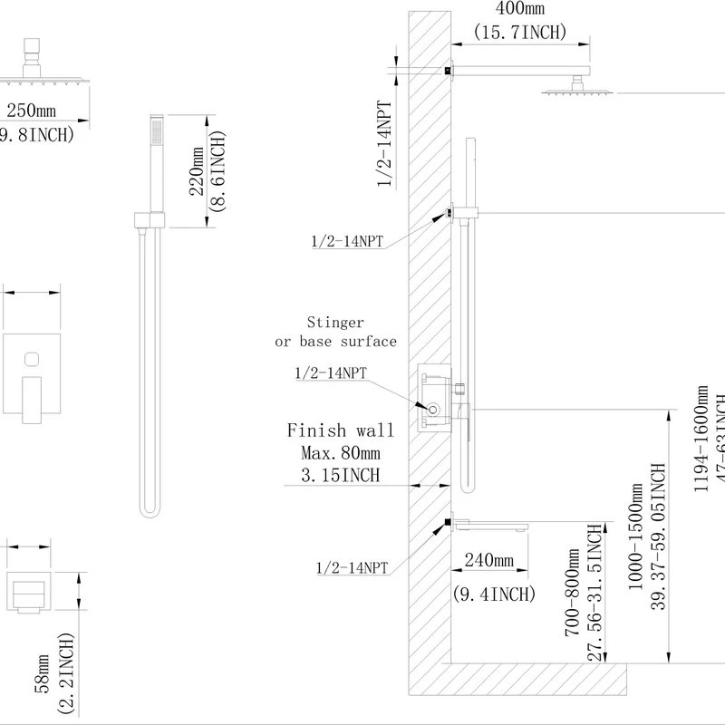 This shower system is stylish and luxury. Come with a 9.8-inch shower head, tub spout handheld shower with 59 inch length shower hose and 15.74-inch long shower arm, which can fit a variety of bathrooms. The cUPC certificated pressure balance valve makes sure safety for you and your family with long term, reliable shower protection from scalding and cold shocks. You can quickly make water full your bathtub by the tub spout. Enjoy a luxurious shower experience, with modern excellence in performance.