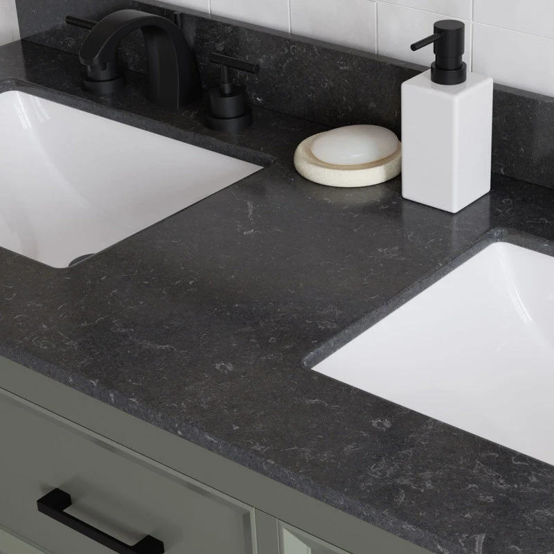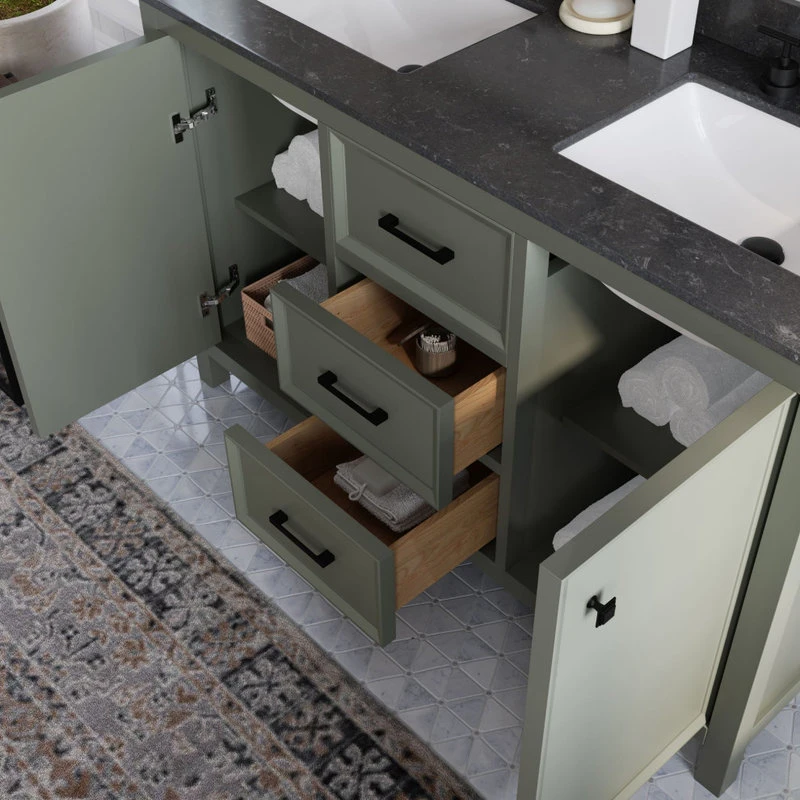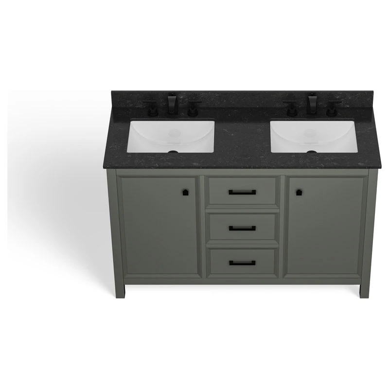 Straight and structured with clean lines and simple cabinet pulls, this spacious traditional vanity will stand proudly in any bathroom. The natural stone counter and squared-off, white ceramic sink complement the classic furniture design for a cohesive look that’s both fresh and timeless. No fancy adornments are needed here. Its unfussy design is what makes the Woodruff so special�and so versatile. Keep things minimal or add your own flourish; the choice is yours.